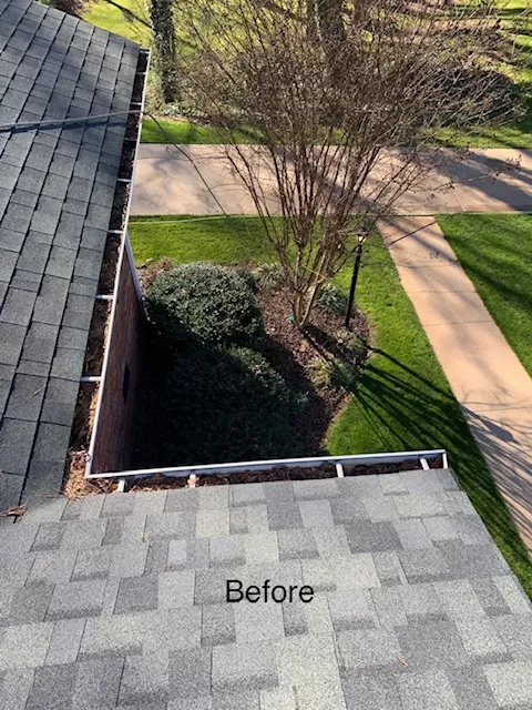 We received a call from a homeowner in Mooresville that was in desperate need of a gutter cleaning. The gutters were filled with leaves and debris especially in the downspout areas and were overflowing. The gutters were obviously not working properly, and it had been several years since being cleaned. The homeowner was also concerned about the height of the gutters, and she could not safely clean them herself. We assured her that we would clean all the debris from the gutters safely and rinse all the gutters and downspouts to make sure they were working properly before we left.