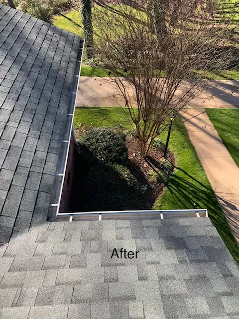 Rinsing the gutters and downspouts is a crucial step that most cleaners skip. Most gutter cleaning companies simply blow the gutters out with a leaf blower and move on to the next job where we add the extra step to add water to ensure everything is working properly. After the cleaning, the gutters were completely clean and flowing properly and the homeowner had the peace of mind that her home would not be damaged from clogged gutters.